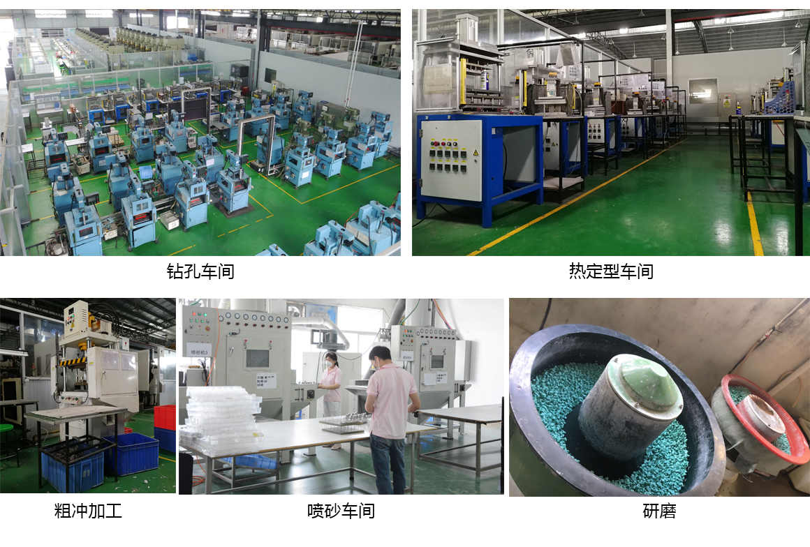 后加工處理工序有:鉆孔、熱定型、粗沖、 CNC加工、噴砂、研磨等.